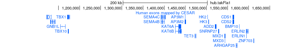 UCSC Genome Browser on Yellowbelly pufferfish May 2013 (version 1 of Takifugu flavidus genome/takFla1) (hub.takFla1)